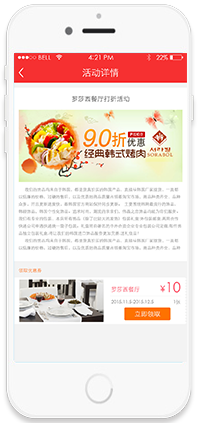 江海山田APP是餐饮类企业量身定制的手机应用程序,除了标准版的基本功能以外,还可以实现美食的分类展示(后台提供精美的菜谱图库),并可提交订位、取餐、送餐。后台配套订单管理等功能